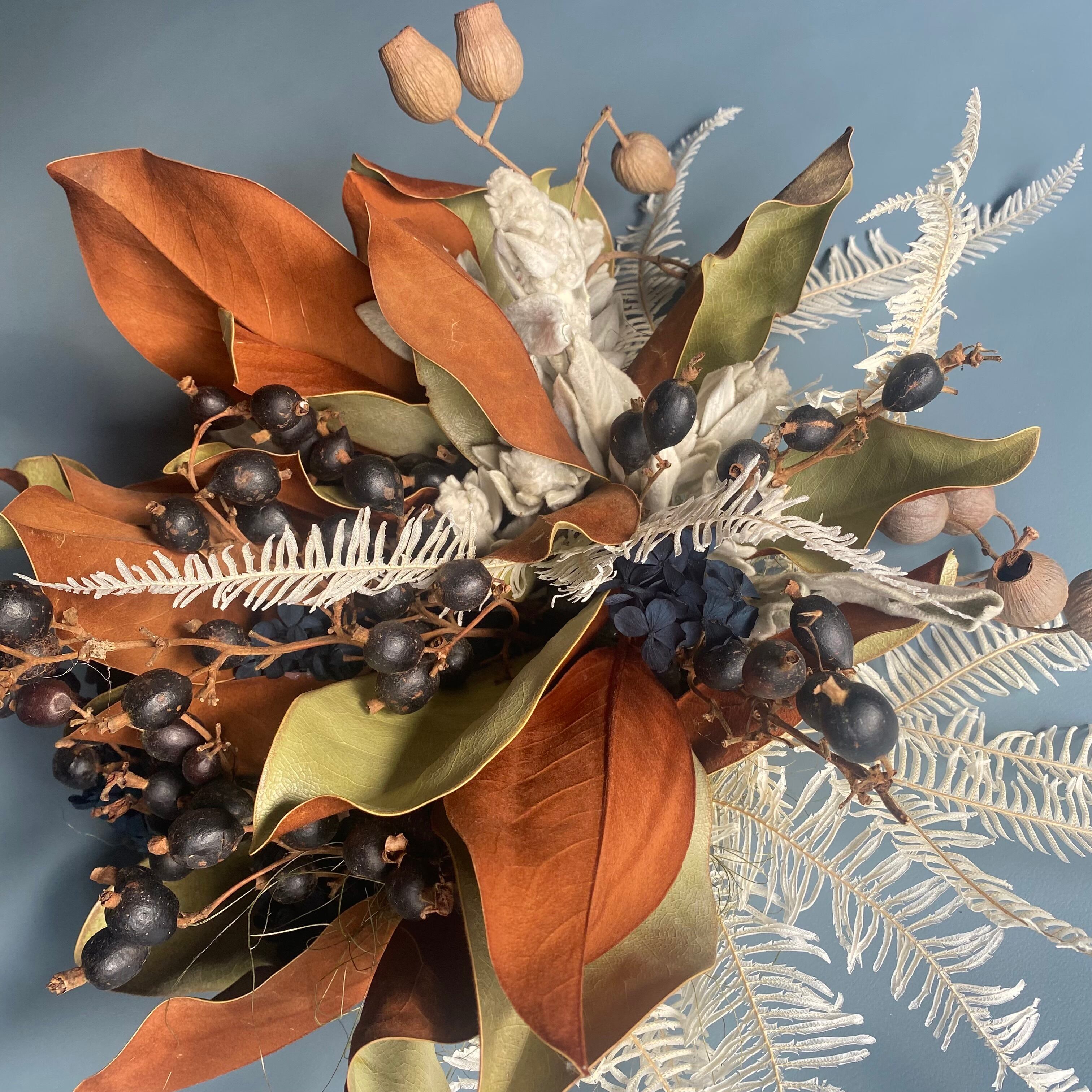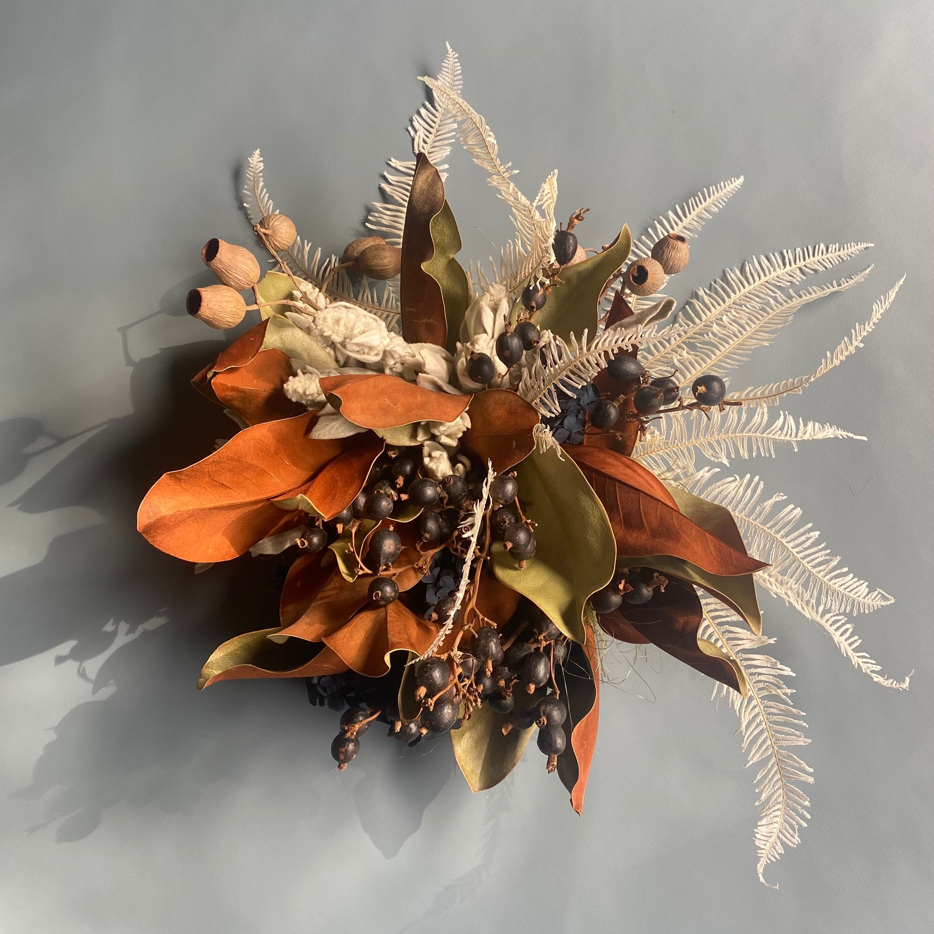 色味を抑えた、どんな場所にも溶け込みやすいナチュラルリースです。
